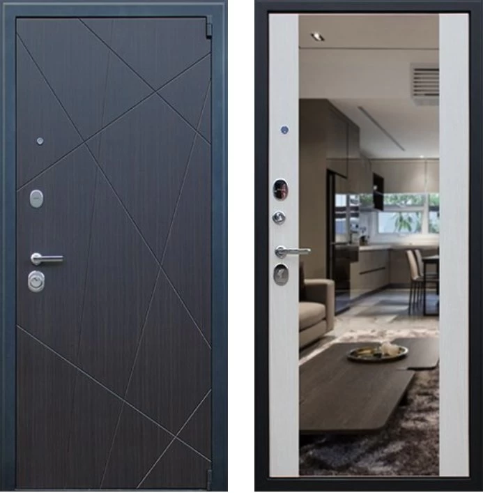 Надежная входная Дверь Вектор с зеркалом премиум класса по цене 48 837 руб. Большая толщина стали защитит от проникновения в ваш дом, квартиру или коттедж. Используется очень качественная фурнитура: замки, цилиндры, ручки, защелки. Покрытие и отделка двери изготовлено под внимательным контролем производителя. Дверь имеет долгий срок службы и гарантию.