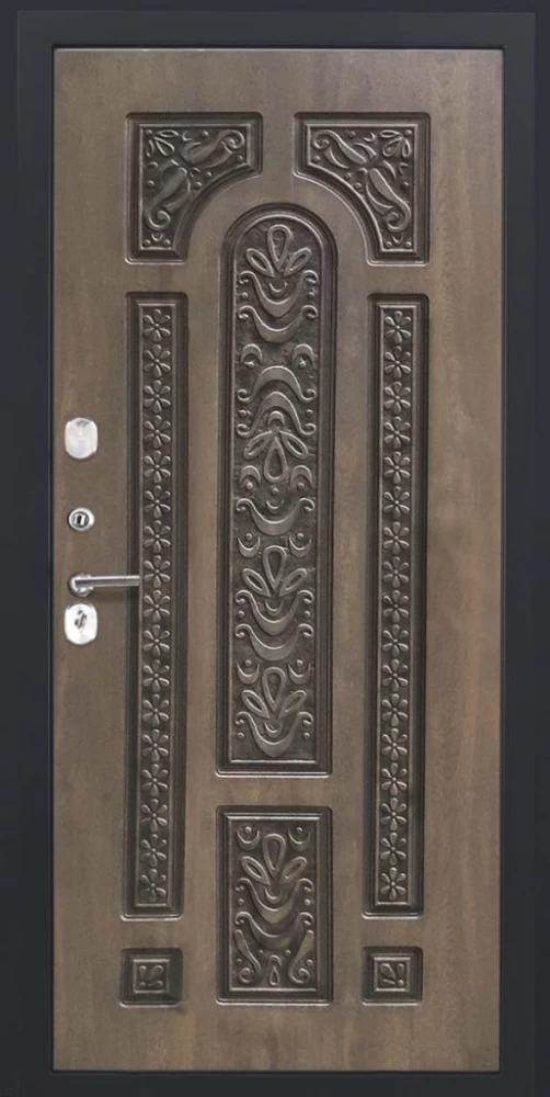 Дизайнерская входная Входная дверь ДвериПРО Rosna Д-19 (16мм, Грецкий орех + черная патина винорит) DPRO196660 класса Люкс с несколькими листами стали, звукоизоляцией и теплоизоляцией. Утепленный короб и полотно защитят от сквозняков и шумов. Модель не только надежная, комфортная, защищенная и высочайшего качества, но и очень красивая! Будет отлично сочетаться с интерьером дома, квартиры или офиса. Сейчас действует выгодное предложение по цене: 84 477 руб.